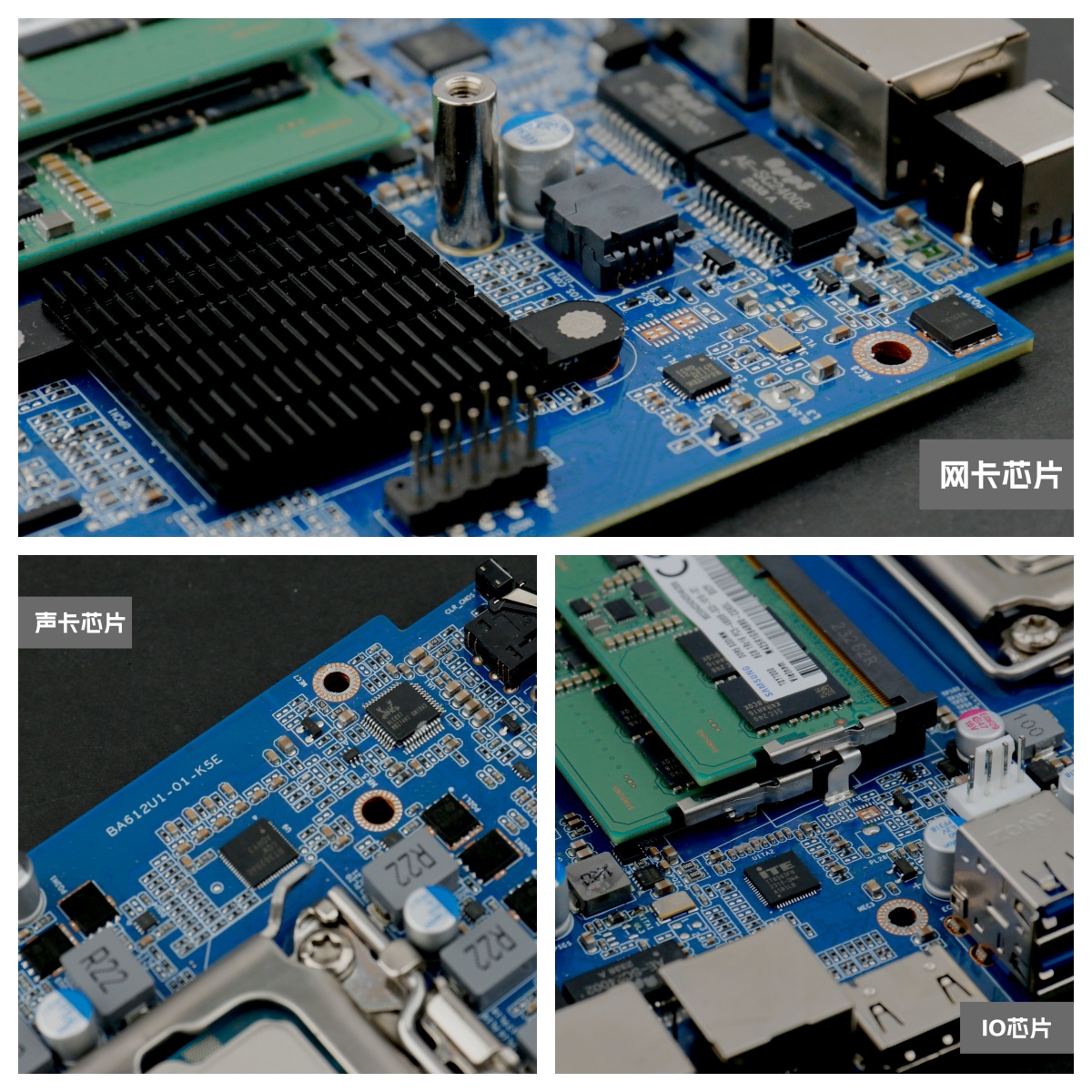 k8凯发桌面云终端Y-BOX P3主板采用的是6相供电,为H610入门级芯片组,CPU附近都分布了相关的芯片,在千兆网口附近有2个网卡芯片RTL 8111H,在主板背面的音频接口附近可以看到1个经典的“小螃蟹”ALC897 声卡芯片,声卡芯片附近有一个I/0 芯片ITE8613E-LX。