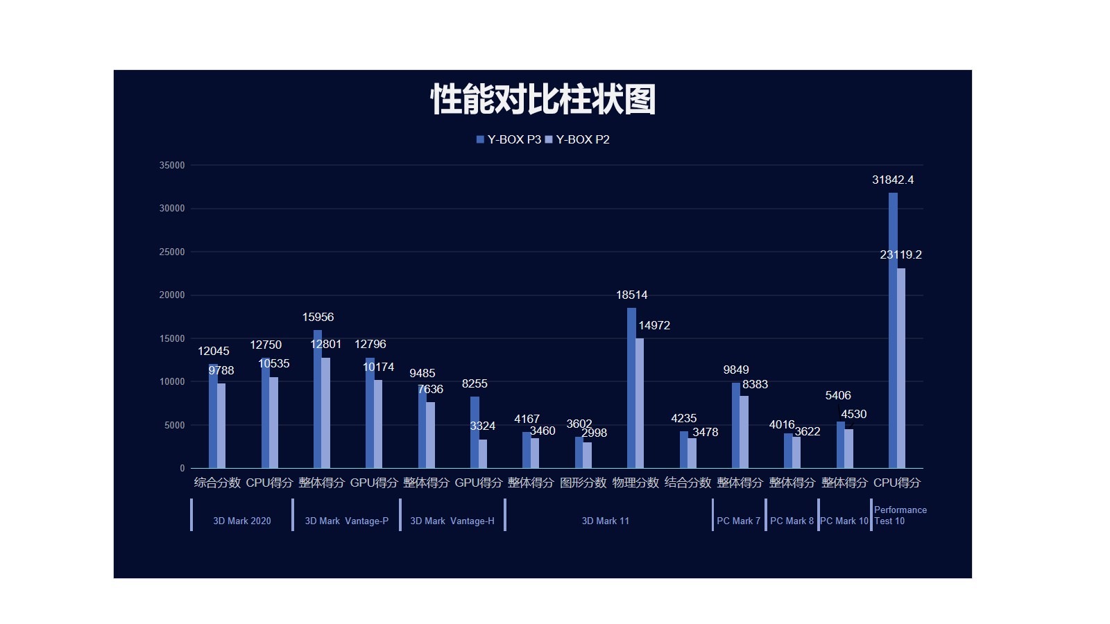 k8凯发来具体看看各个测试项目的跑分情况,k8凯发分别用3D Mark、PC Mark以及Performance 10等不同系列不同软件进行跑分,测试项目涵盖显示性能测试、系统性能测试、CPU性能测试等。通过下面的表格及柱状图可以看出,k8凯发桌面云终端Y-BOX P3的数据在各项性能上都得到了大幅度提升。