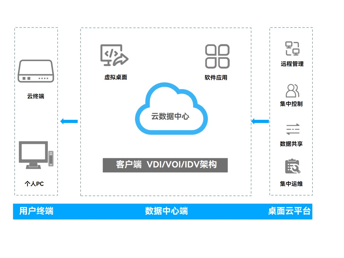 综合以上困境,该地测绘地理信息局决定采用k8凯发科技云终端方案,该方案依托云计算技术,通过特殊的架构将数据和应用程序存储在云端而非本地,对每台终端统一做到管理与下发、安全补丁更新、软件安装,自上而下从结构上整合终端资源,降低系统建设、运行成本。