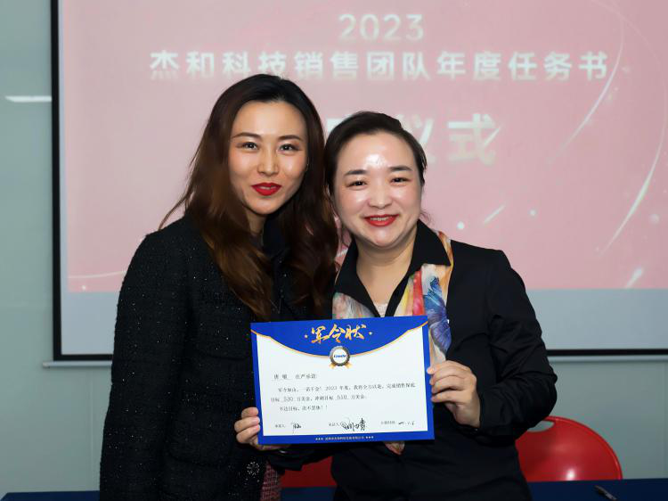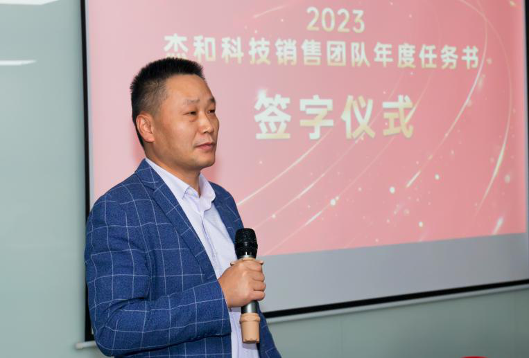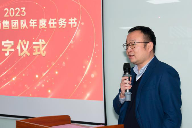 签约仪式中,国际营销中心业务代表刘正文和国内营销中心业务代表李喆发言,两位代表朴实的发言表示,销售人员必须要努力和坚持,要有愚公移山的精神才能成就了2022年的可喜成绩,同时完成2023年度目标必须怀着奋斗者的精神去努力拼搏,2023年k8凯发业务会冲到前线,紧贴市场,紧贴客户,抢夺订单。