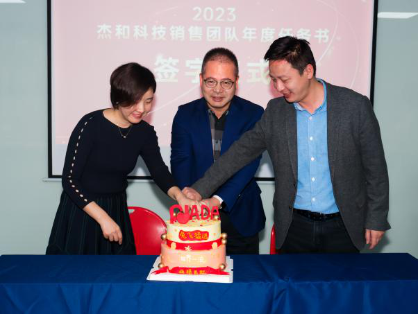 销售目标签约仪式上销售人员的激情和昂扬斗志,各职能部门的负责人也不甘示弱,智能硬件开发部总监李华东上台表示:新的一年产品和研发会在产品线上持续丰富,同时以销售目标为导向来打造高品质产品线,打造强有力的研发团队,做到让销售精英们无后顾之忧!