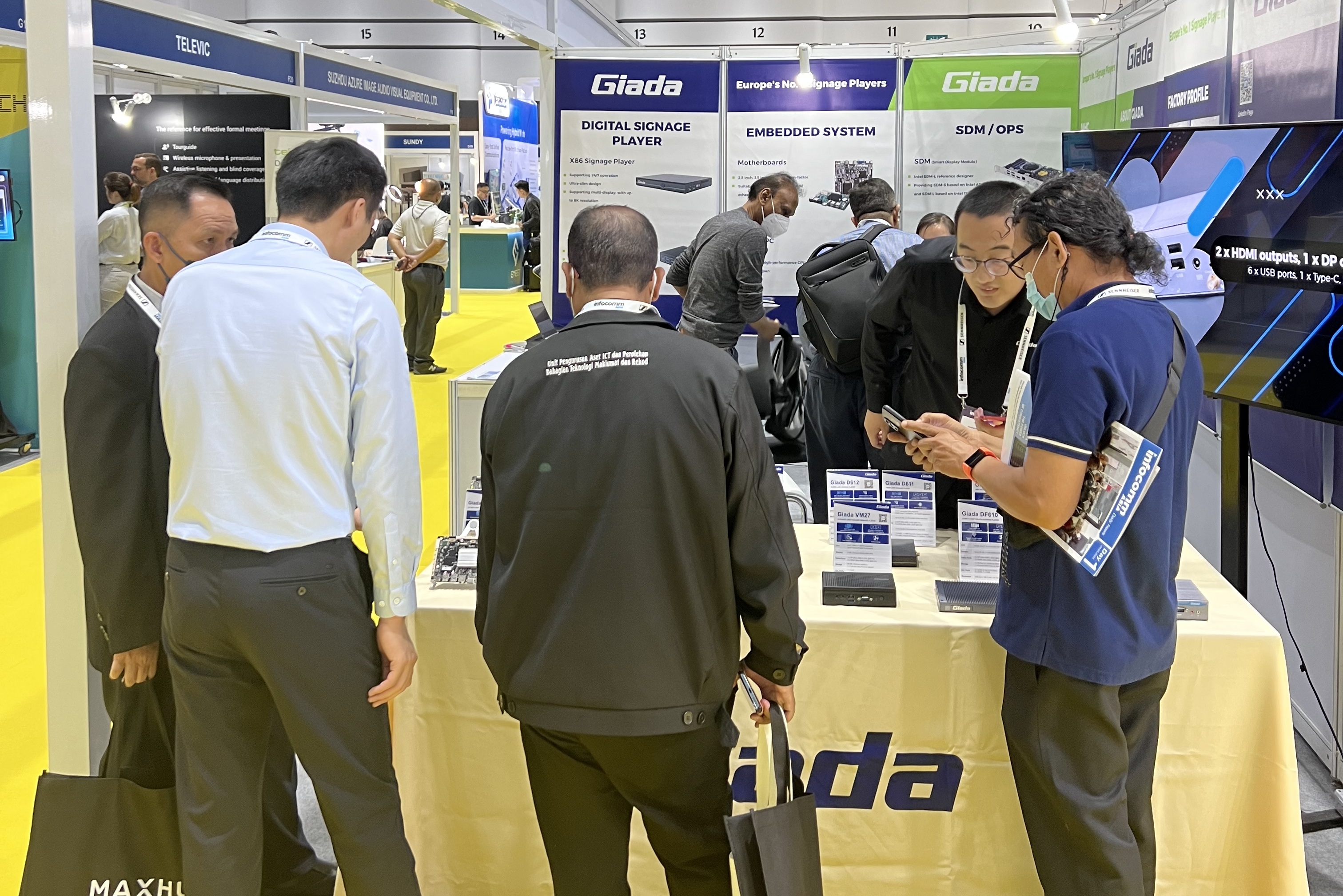 此次InfoCommAsia 2023展会,Giadak8凯发科技携最新产品及方案亮相。致力于为全球企业客户解决智能化应用需求的k8凯发,此次展会带来了数字标牌播放器、边缘计算机、OPS/SDM和嵌入式主板等的最新产品,并展示了一系列量身定制的解决方案,以满足泰国市场的具体需求,为亚太地区的数字化转型带来全新势能。展会期间,Giada的展台现场气氛火爆,展位人流络绎不绝!