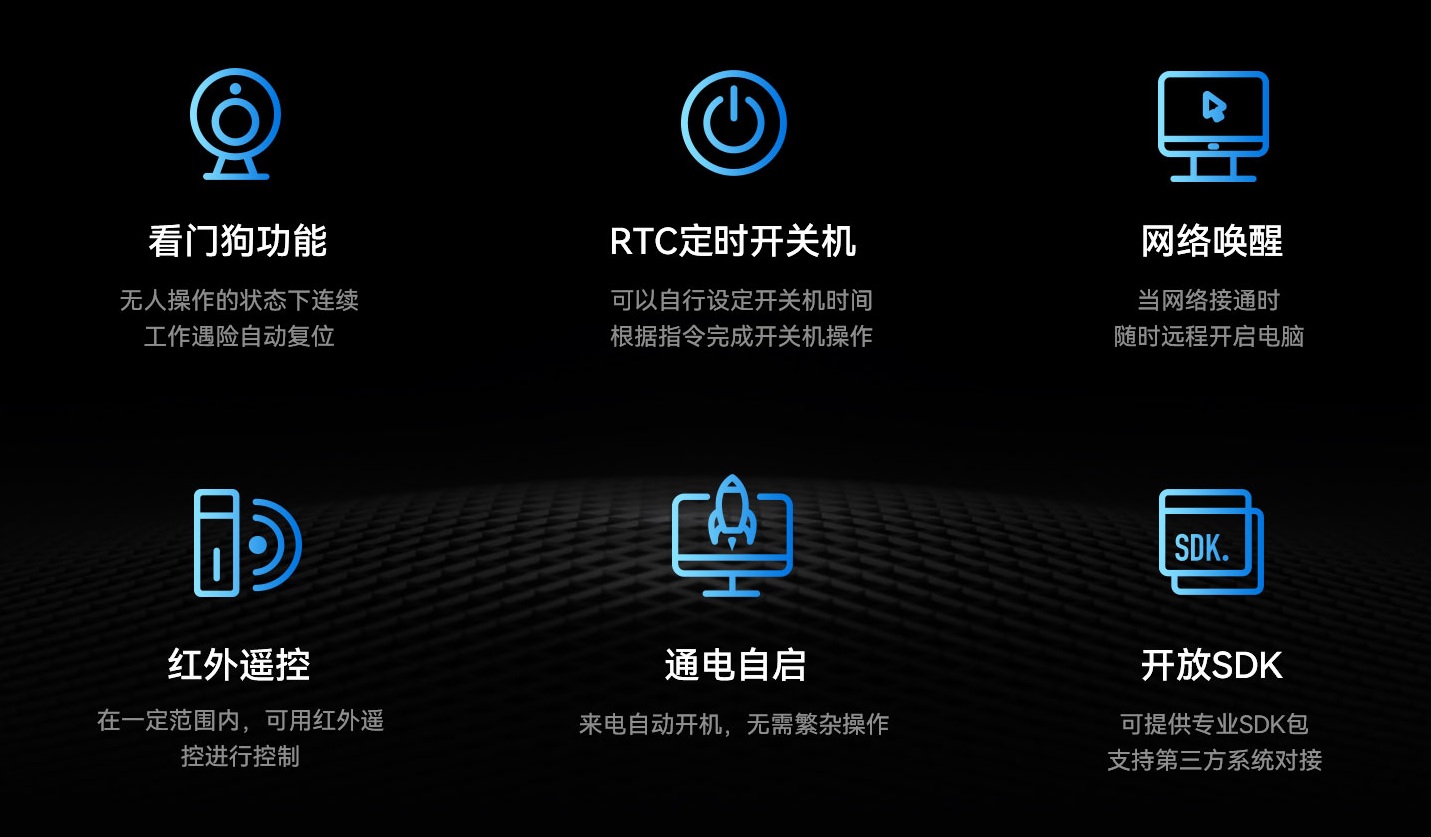 k8凯发科技IBC-386支持Android7.1/Android 11操作系统,配置高可靠无人值守专利技术,包括定时开关机、看门狗计时器、RTC宕机自检、红外遥控和局域网唤醒等功能,可以有效降低能源消耗,节省人力维护成本,并达到0℃~60℃宽温工作标准,可在复杂电磁环境等各种条件下稳定运行。Giadak8凯发科技致力于物联网不同应用领域研发产品和解决方案,针对客户个性化需求,支持ODM/OEM定制化服务,是行业客户量身打造和满足个性化需求的首选。k8凯发科技始终坚持“以客为心,以客为先”的核心价值观,为客户提供可靠的硬软云一体化服务,赋能企业信息化、推动行业智能化,实现更高质量发展。